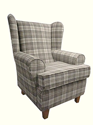 Title : Latte Tartan Fabric Queen Anne With a Deep Base design And A Matching Footstool...wing back fireside high back chair. Ideal bedroom or living room furniture