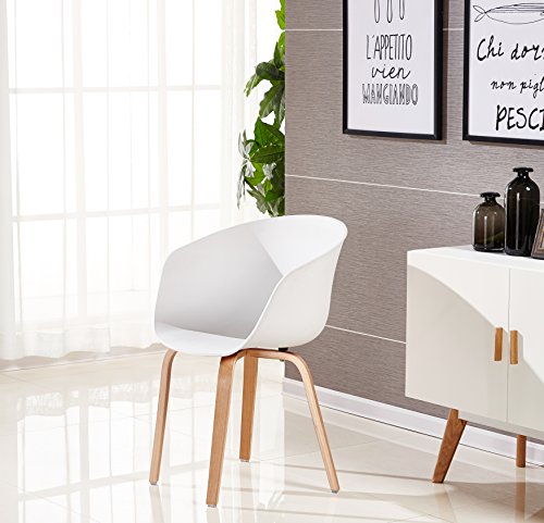 Description : Approx. Dimensions : Total Chair Height : 75cm ; Seat Height : 40.5cm ; Chair Width : 52cm ; Chair Depth : 52cm . Modern Elegant Design. Premium Plastic and Wood combination. Very popular and can be used as dining chairs, office chairs or for any rooms in the house.